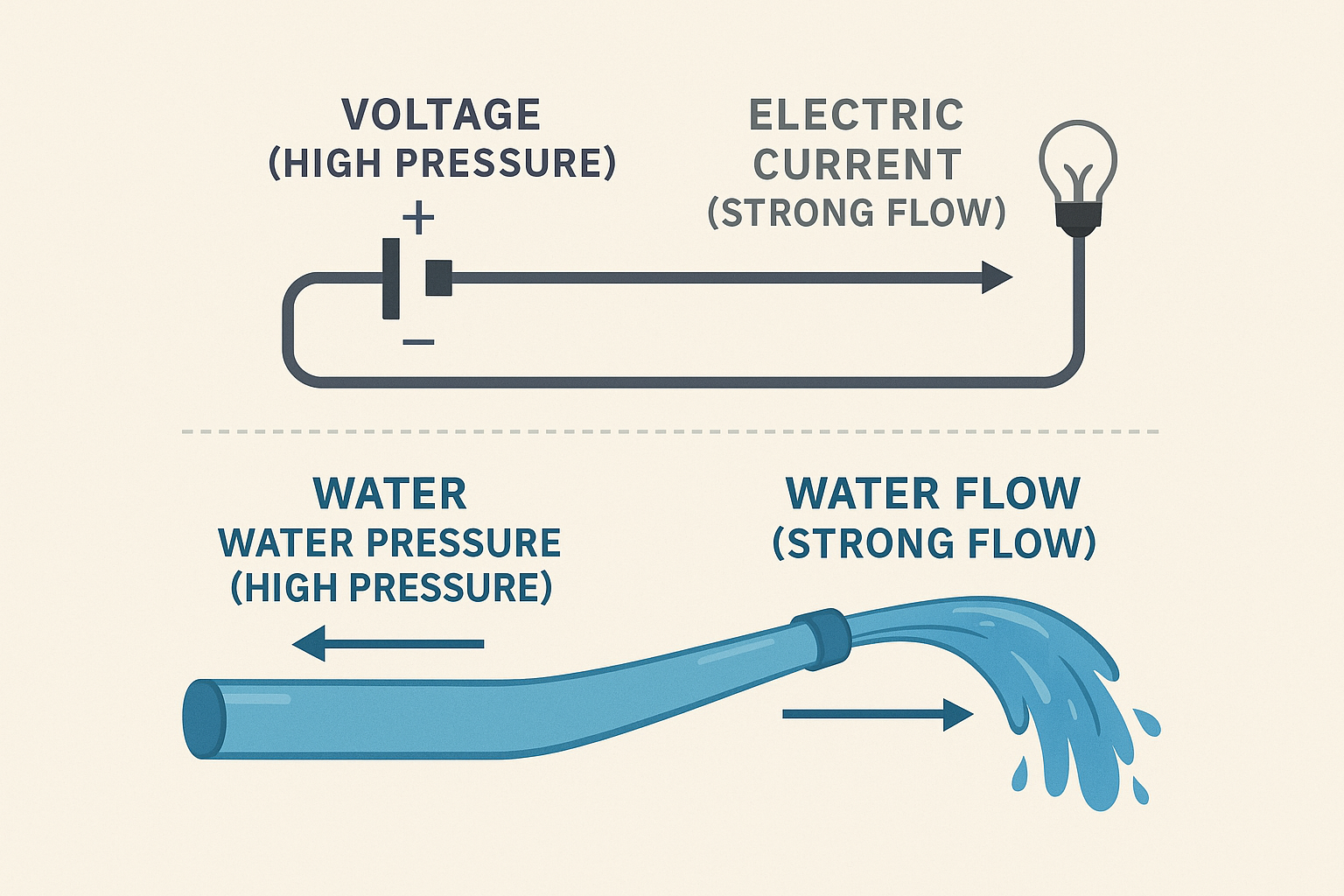 - You can have high pressure but no flow (hose turned on but nozzle closed), or low pressure with steady flow (a wide stream). Both matter, but it’s the combination that determines how much useful work gets done.